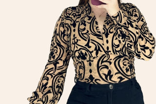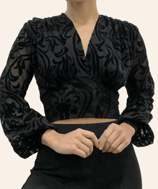 Daring yet refined, the Velour Noir Blous combines sleek spandex with sheer mesh and velveteen accents for a look that’s equal parts elegant and seductive. Designed for unforgettable nights out, this versatile piece in both short and long sleeve won’t stay in stock for long — make it yours before it’s gone