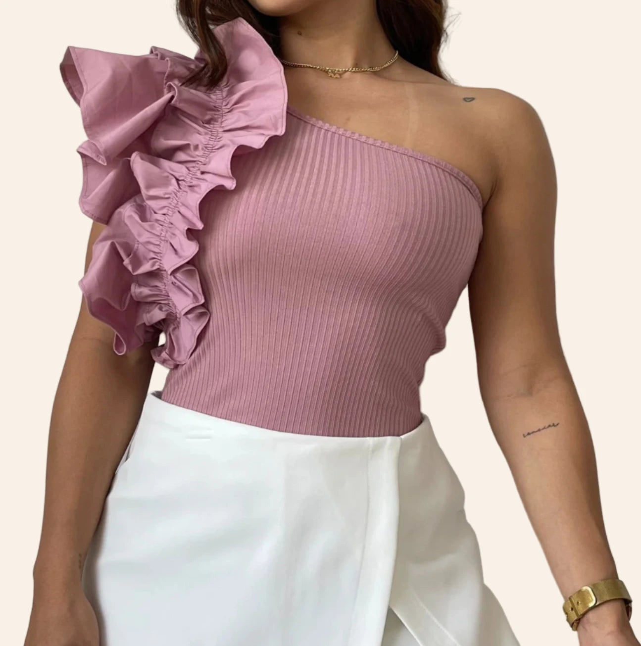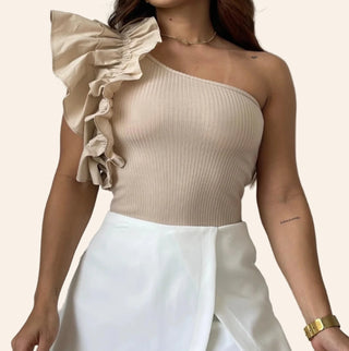 “Where ruffles meet confidence.”“ The Nova Ruffle Bodysuit is your go-to statement piece, combining bold asymmetry and elegant stretch for a look that turns heads day or night.” Redefines statement style with its dramatic one-shoulder ruffle and sleek, body-hugging fit. This versatile piece transitions seamlessly from day to night.