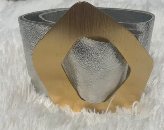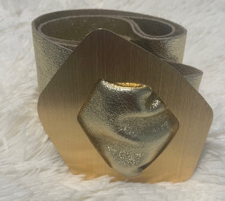 Imported from Italy, this 100% genuine leather belt exudes sophistication and strength. With its modern metallic finish and sculptural gold buckle, The Power Shine Belt adds effortless elegance to any look — the perfect accent for polished daywear or radiant holiday nights.